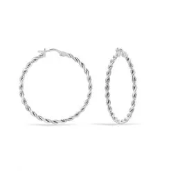 Histoire D’Or Créoles Abie Effet Torsade Lisse Et Diamante Argent Blanc