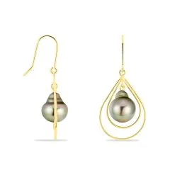 Histoire D’Or Boucles D’oreilles Pendantes Martyna Or Jaune Perle De Tahiti
