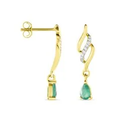 Histoire D’Or Boucles D’oreilles Pendantes Or Jaune Patrocle Emeraude Et Diamants