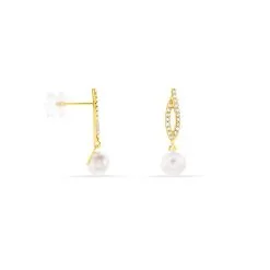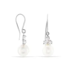 Histoire D’Or Boucles D’oreilles Pendantes Taissia Or Blanc Perle Culture Et Oxyde