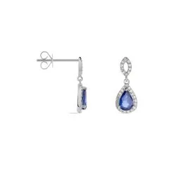 Histoire D’Or Boucles D’oreilles Puces Sissi Or Blanc Saphir Et Diamant