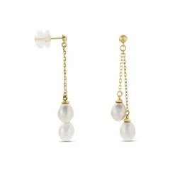 Histoire D’Or Boucles D’oreilles Pendantes Carrine 2 Fils Or Jaune Perle De Culture