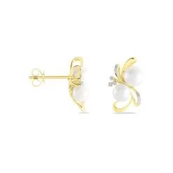 Histoire D’Or Boucles D’oreilles Puces Wandula Or Jaune Perle De Culture Et Diamant