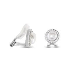 Histoire D’Or Boucles D’oreilles Clips Argent Blanc Viano Perles Oxydes
