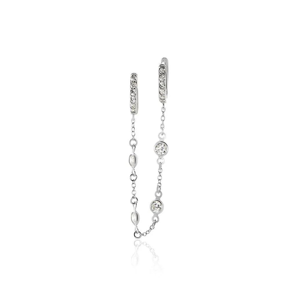 Bijou D’oreille Unitaire Argent Blanc 925/1000 Double Creole Maille Forcat Alternee Serti Clos Oxydes De Zirconium