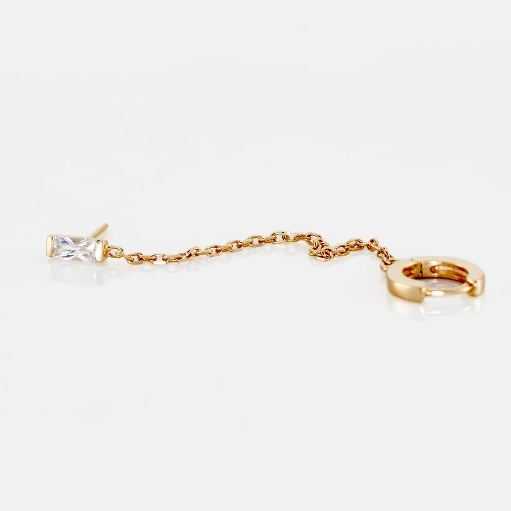 Bijou D’oreille Unitaire Plaqué Or Jaune Oxyde De Zirconium Taille Baguette + Creole Diamètre 11mm