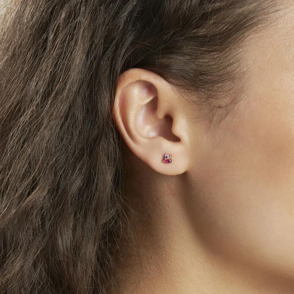 Boucle D’oreille Puce Unitaire Plaqué Or Jaune Oxydes De Zirconium Colorés