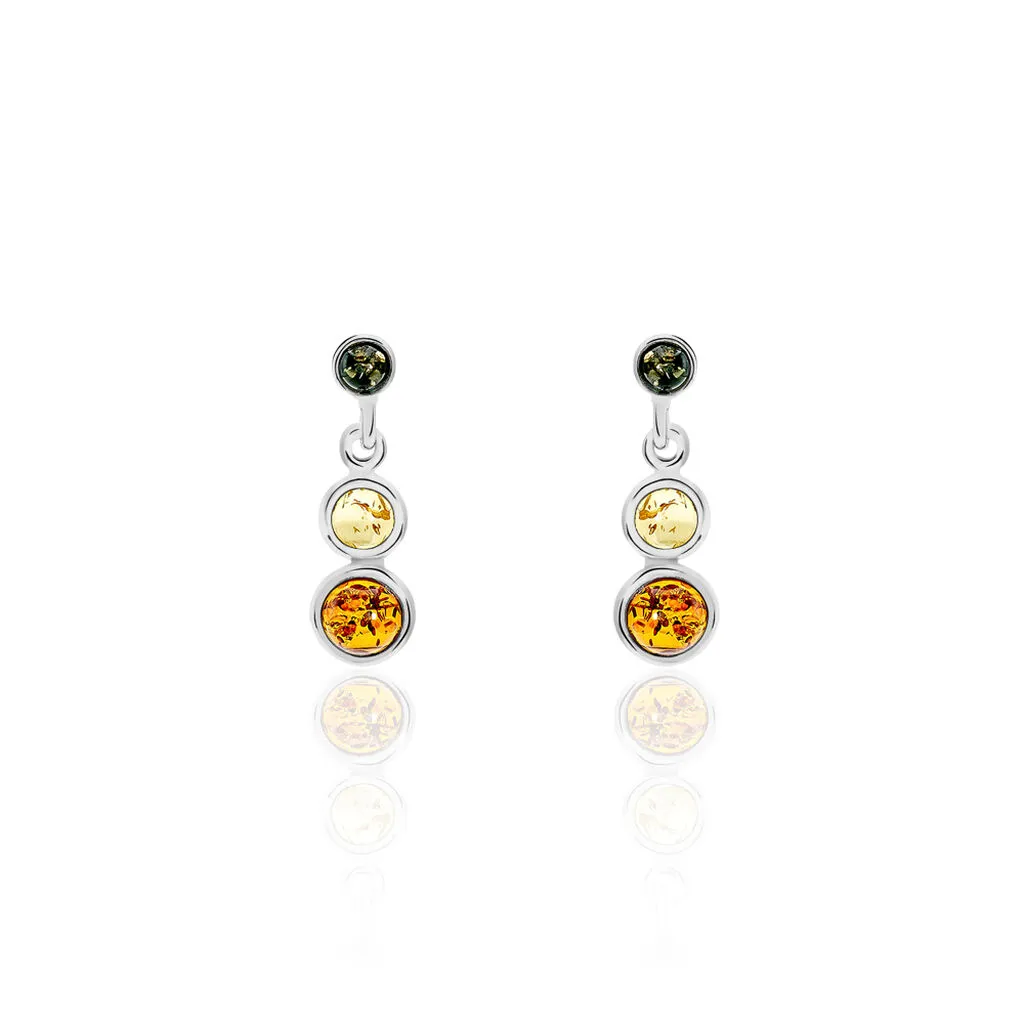 Boucles D’oreilles Argent Blanc 925/1000 Pastilles Ambres Multicolores Vert/miel/cognac