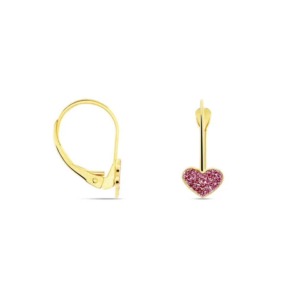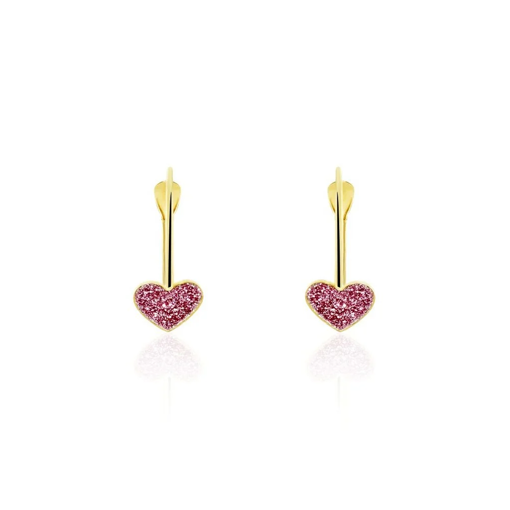 Boucles D’oreilles Or Jaune 375/1000 Dormeuses Cœur Rose Glitter