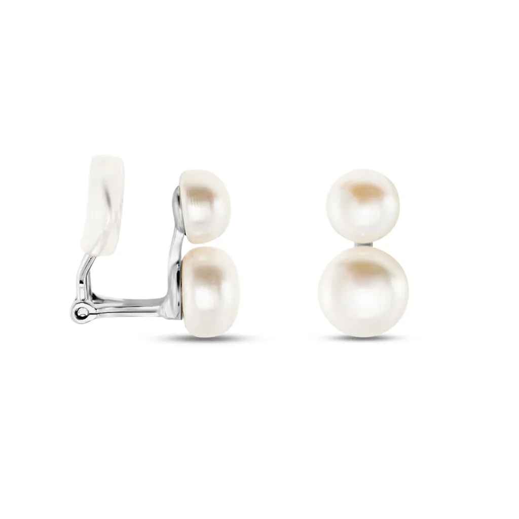 Boucles D’oreilles Clips Argent Blanc Viano Perles Oxydes