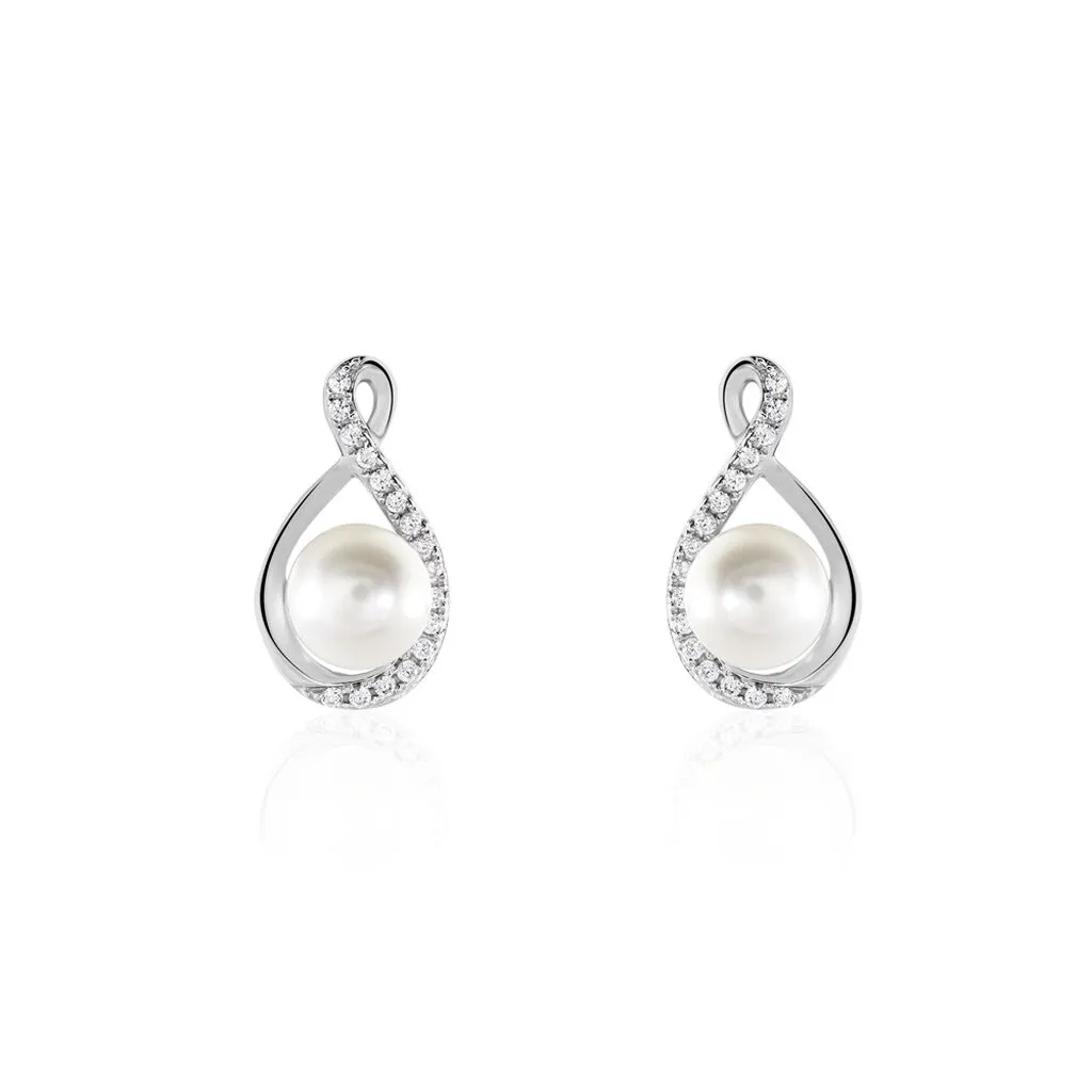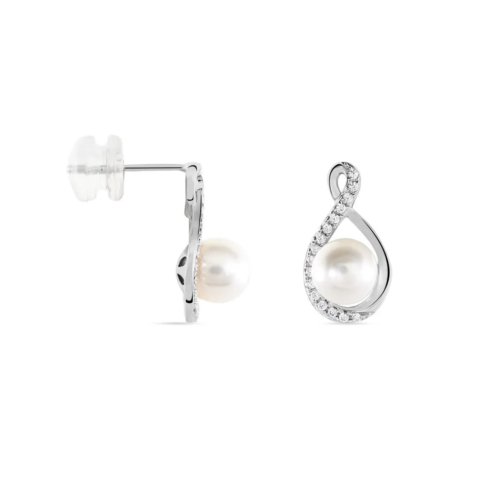 Boucles D’oreilles Davy Or Blanc Perle De Culture Oxyde