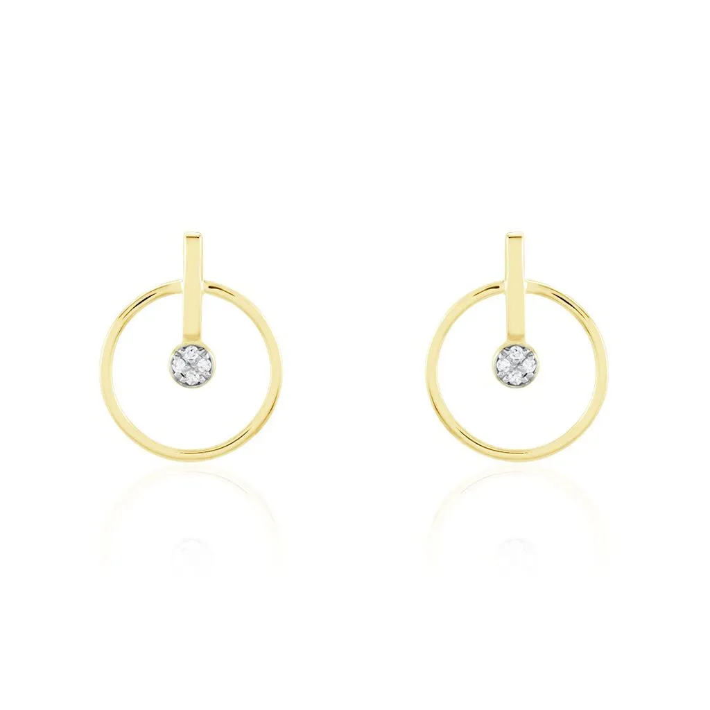 Boucles D’oreilles Or Jaune 375/1000 Motifs Cercles Ronds Diamants
