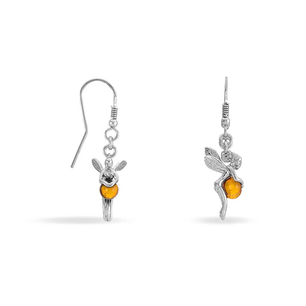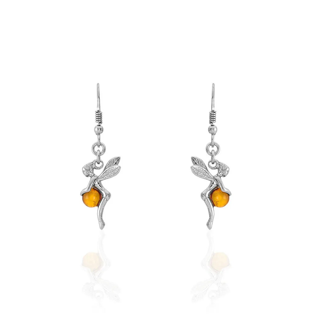 Boucles D’oreilles Pendantes Argent Blanc 925/1000 Ambres Fees