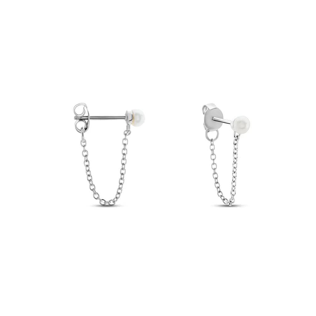 Boucles D’oreilles Pendantes Argent Blanc 925/1000 Perles De Culture 4mm Boucle Chaine Maille Forcat