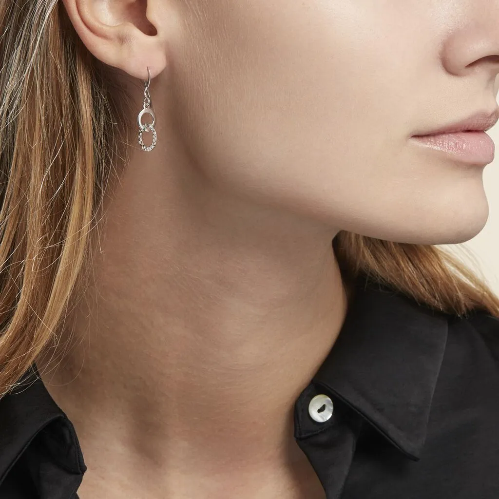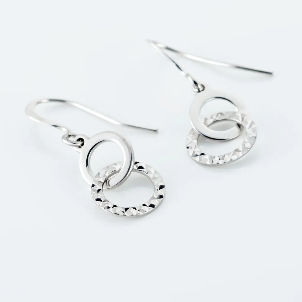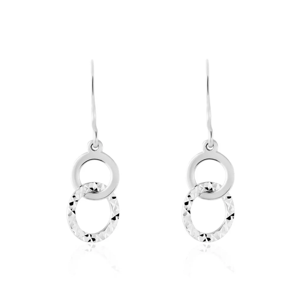 Boucles D’oreilles Pendantes Argent Blanc 925/1000 Doubles Cercles Effet Diamanté