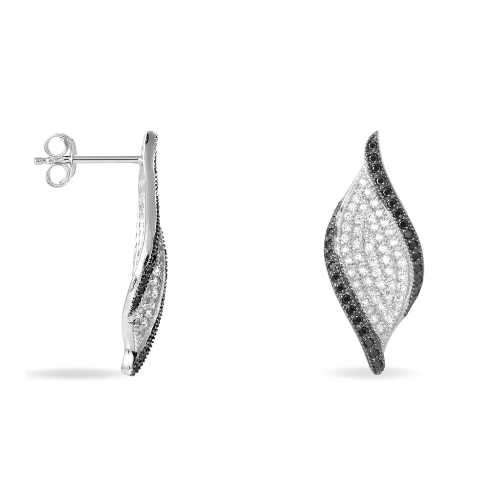 Boucles D’oreilles Argent 925/1000 Vague Et Oxyde