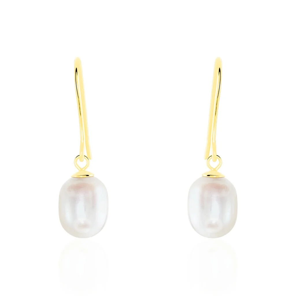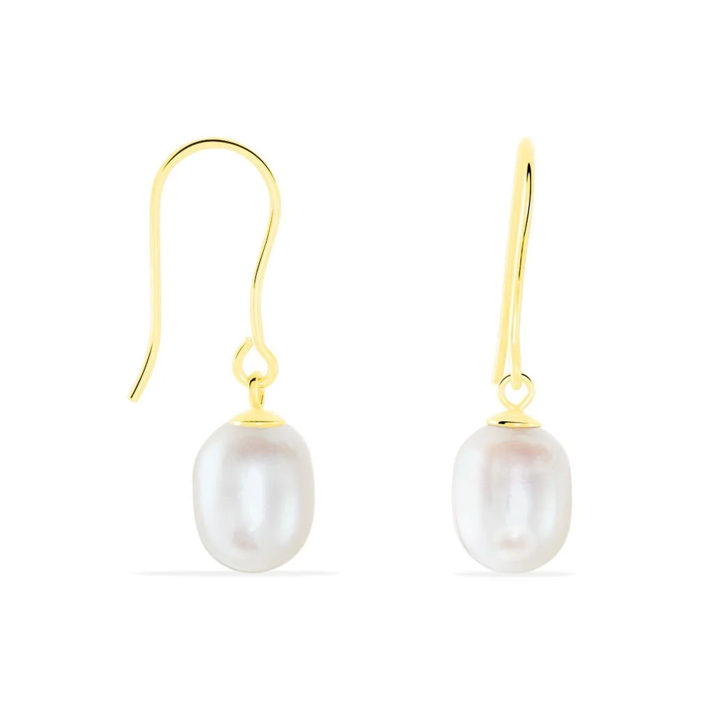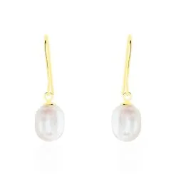 Boucles D’oreilles Pendantes Baroque Or Jaune Perle De Culture