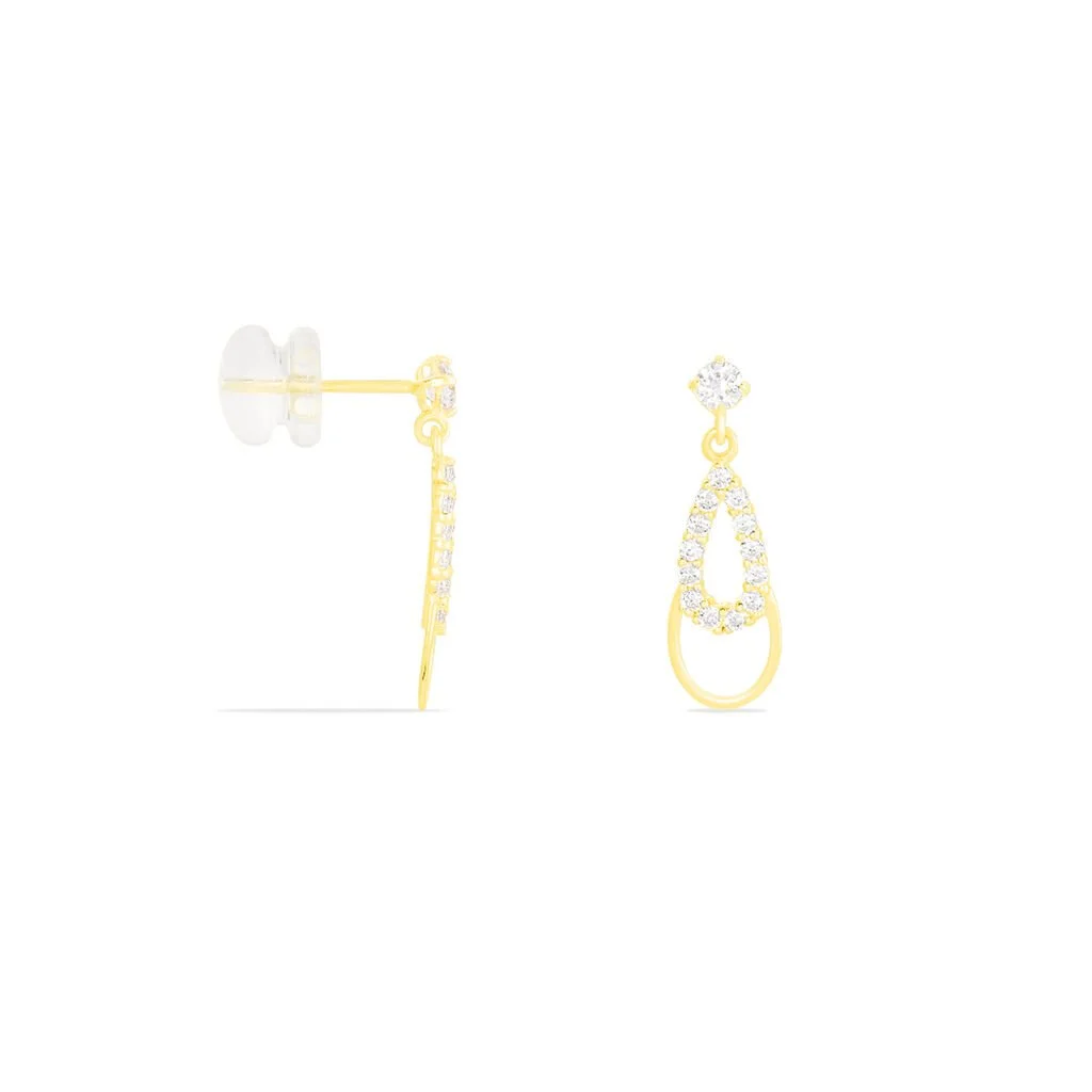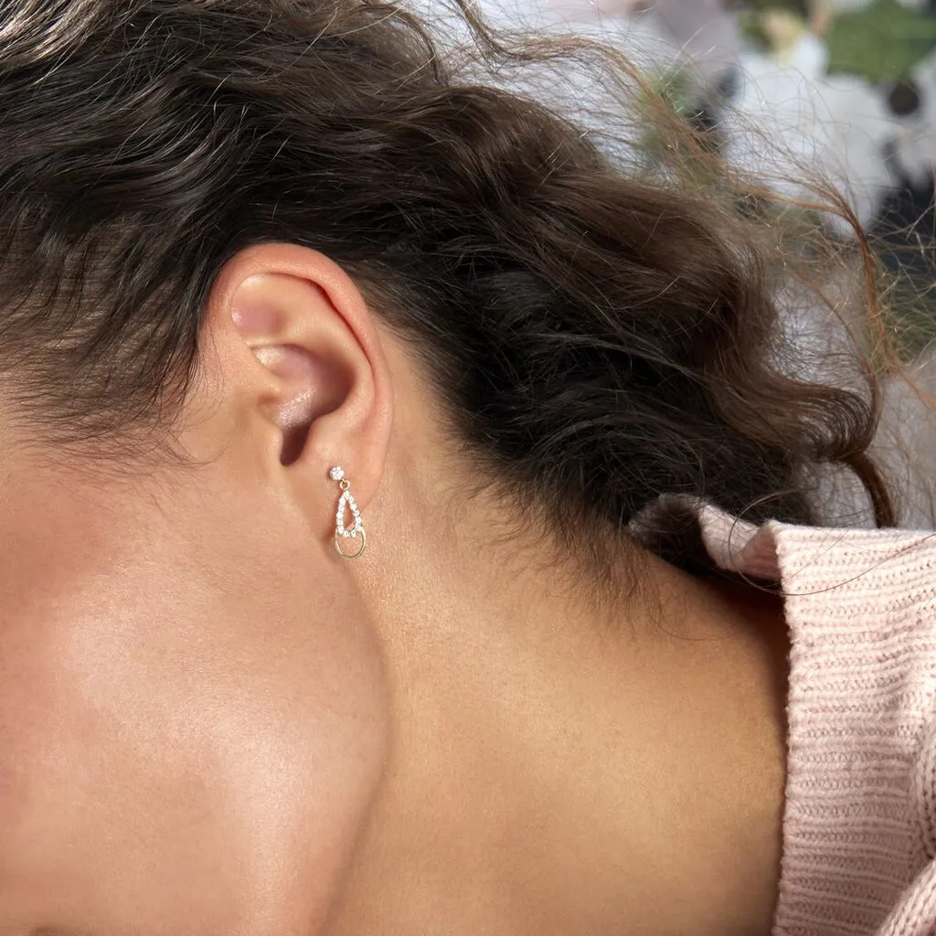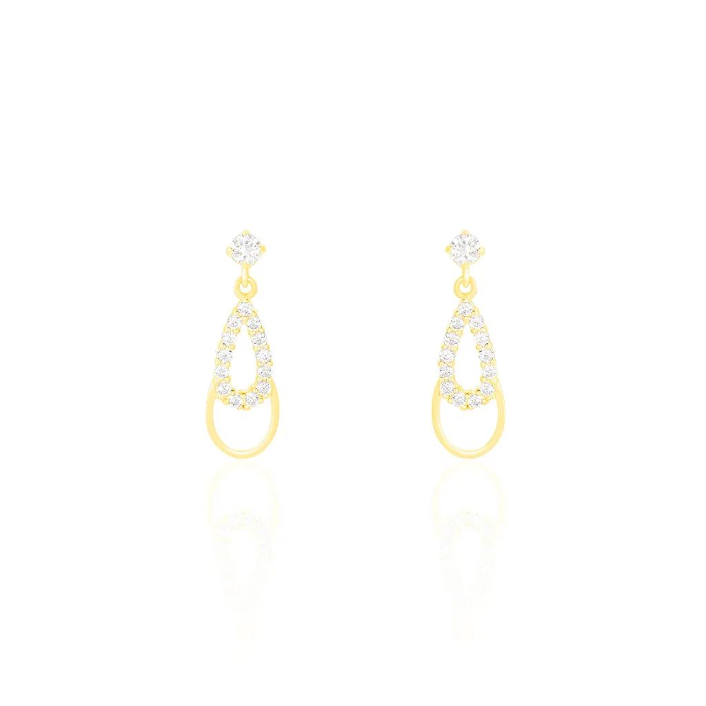 Boucles D’oreilles Or Jaune 375/1000 Celine Double Gouttes Oxydes De Zirconium