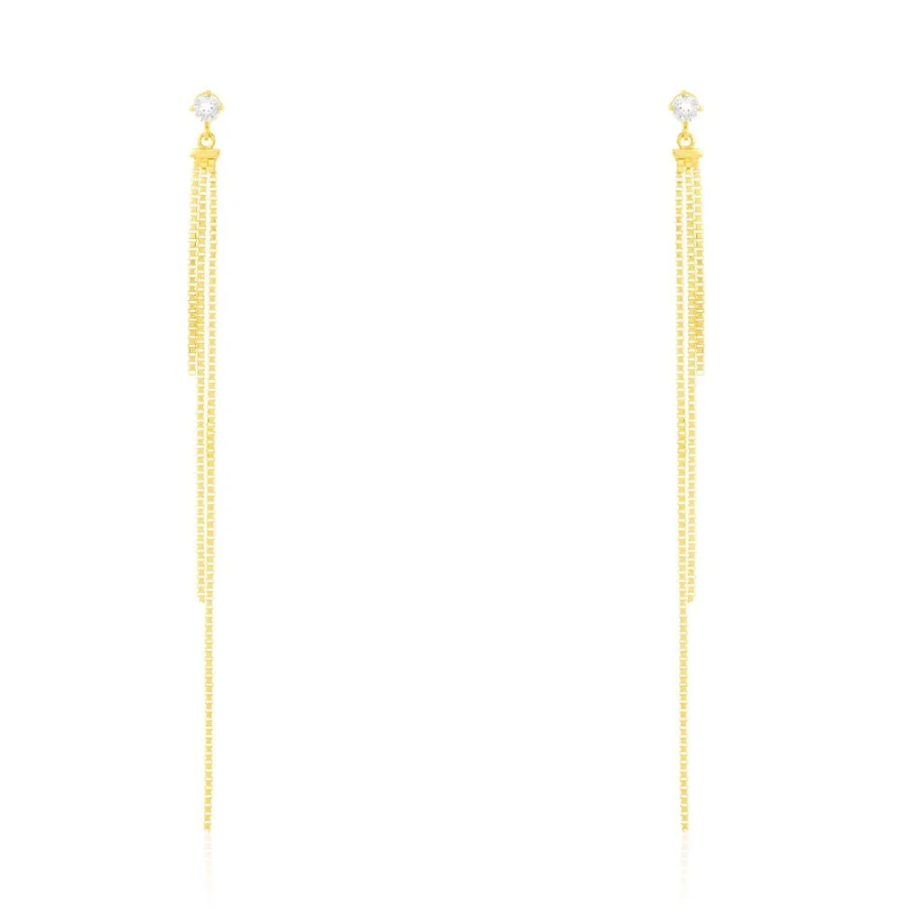 Boucles D’oreilles Or Jaune 375/1000 Chaine 3 Fils Oxydes De Zirconium
