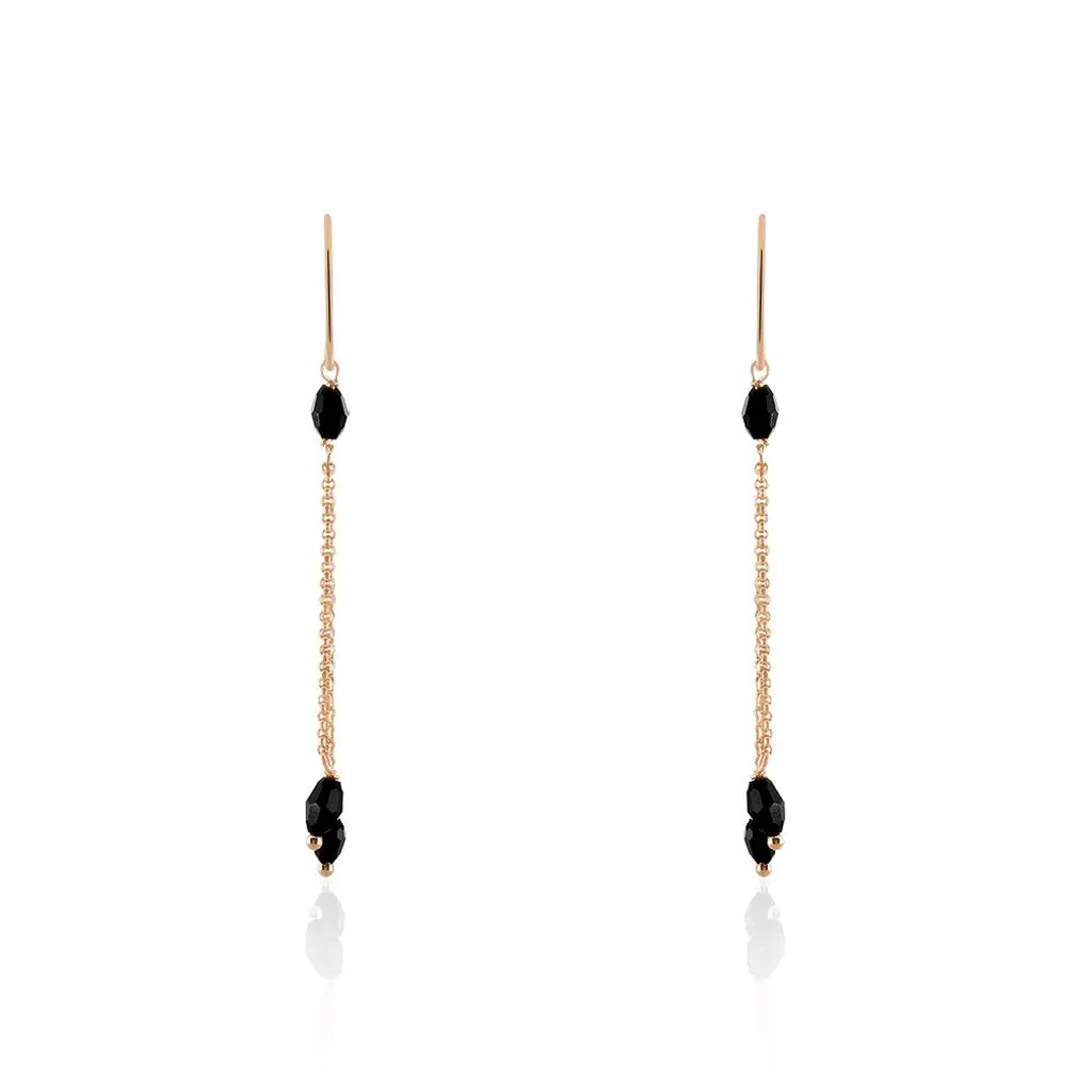 Boucles D’oreilles Pendantes Argent Rose 925/1000 Pierres Noires Mailles Forcat