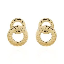 Boucles D’oreilles Plaqué Or Jaune Double Cercles Ajoures Effet Martele