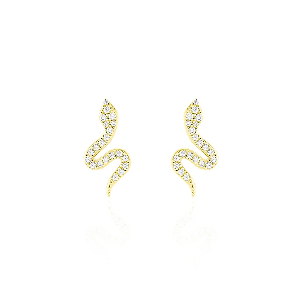 Boucles D’oreilles Or Jaune 375/1000 Formes Serpents Oxydes De Zirconium