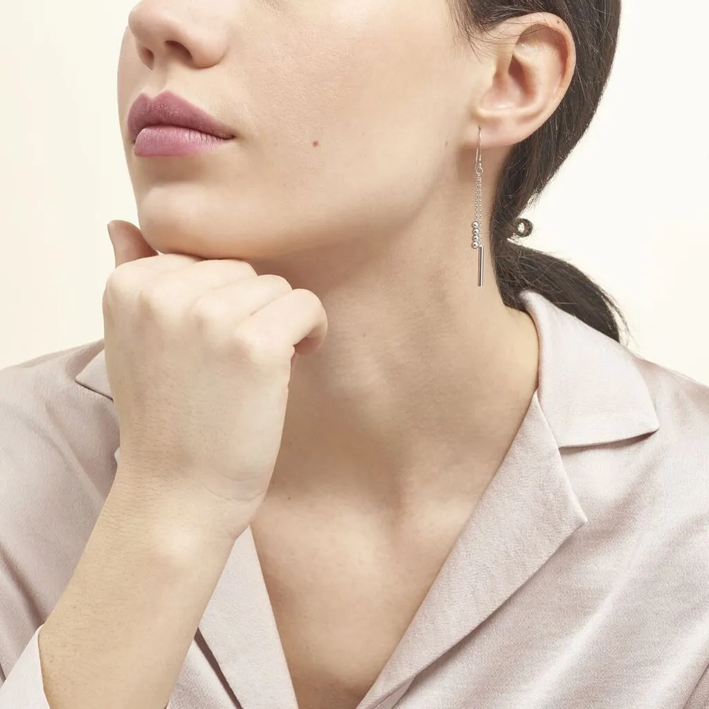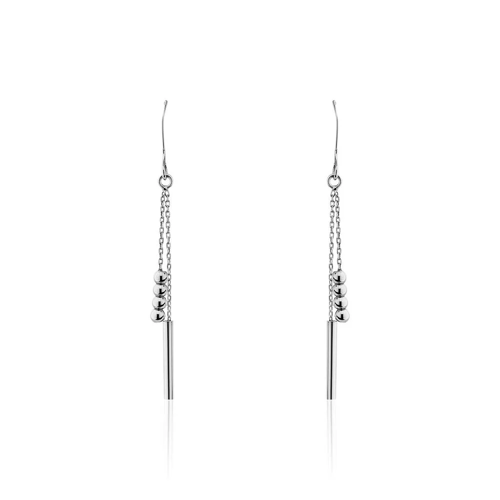 Boucles D’oreilles Pendantes Argent Blanc 925/1000 Tubes Et Boules Mailles Forcat