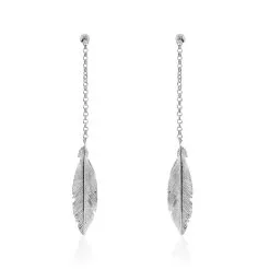 Boucles D’oreilles Pendantes Argent Blanc 925/1000 Plumes Mailles Forcat