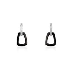 Boucles D’oreilles Pendantes Argent Blanc 925/1000 Motifs Ceramique Forme Etrier Tiges Oxyde De Zirconium