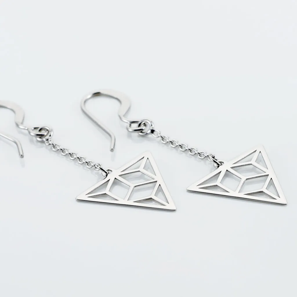 Boucles D’oreilles Pendantes Argent Blanc 925/1000 Triangles Geometriques Ajoures Mailles Forcat