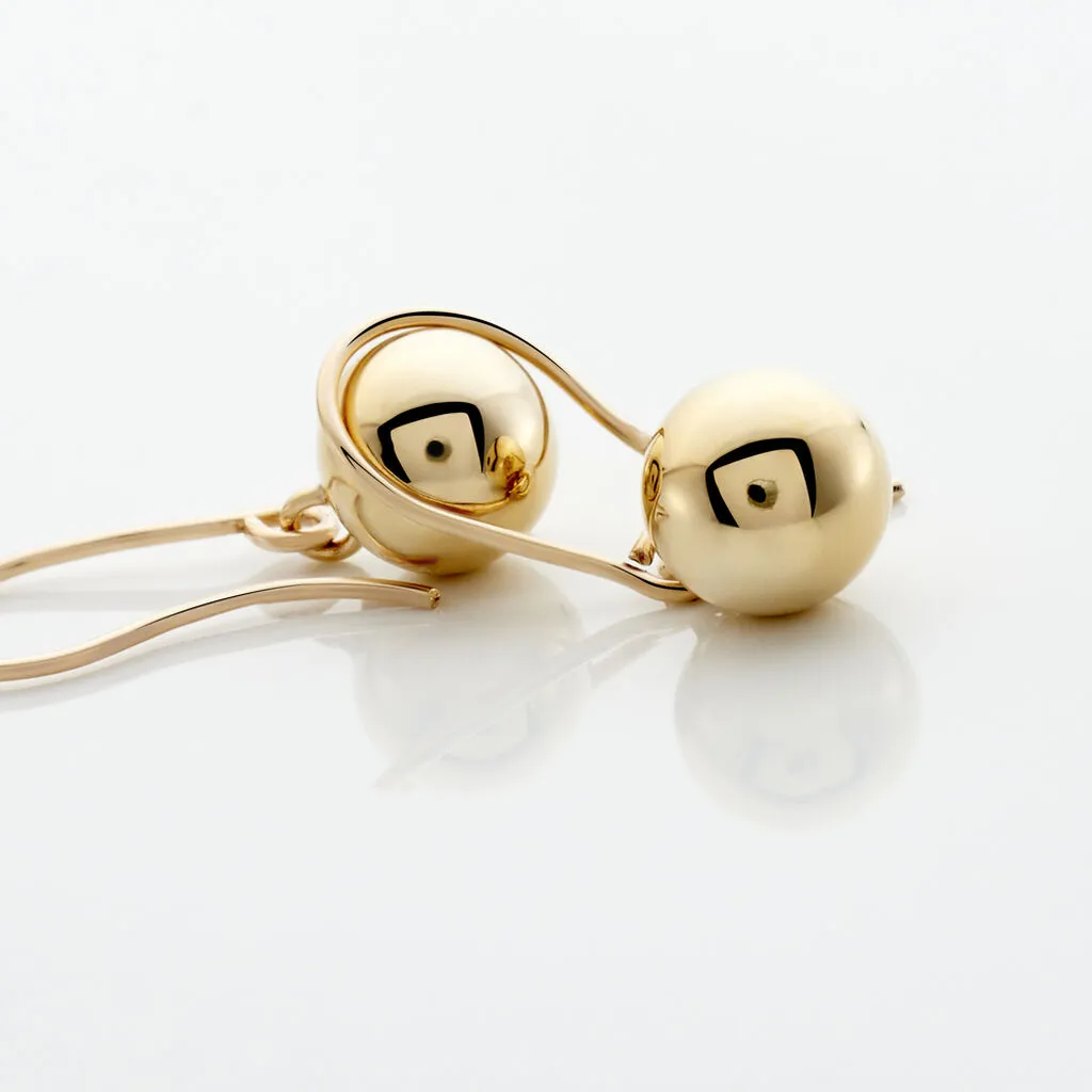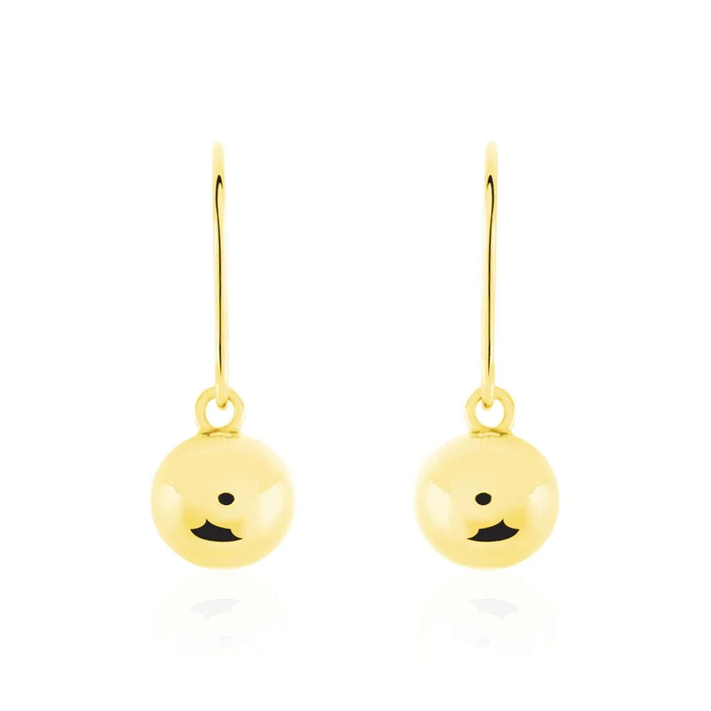 Boucles D’oreilles Or Jaune 375/1000 Pendantes Boules Lisses 6mm