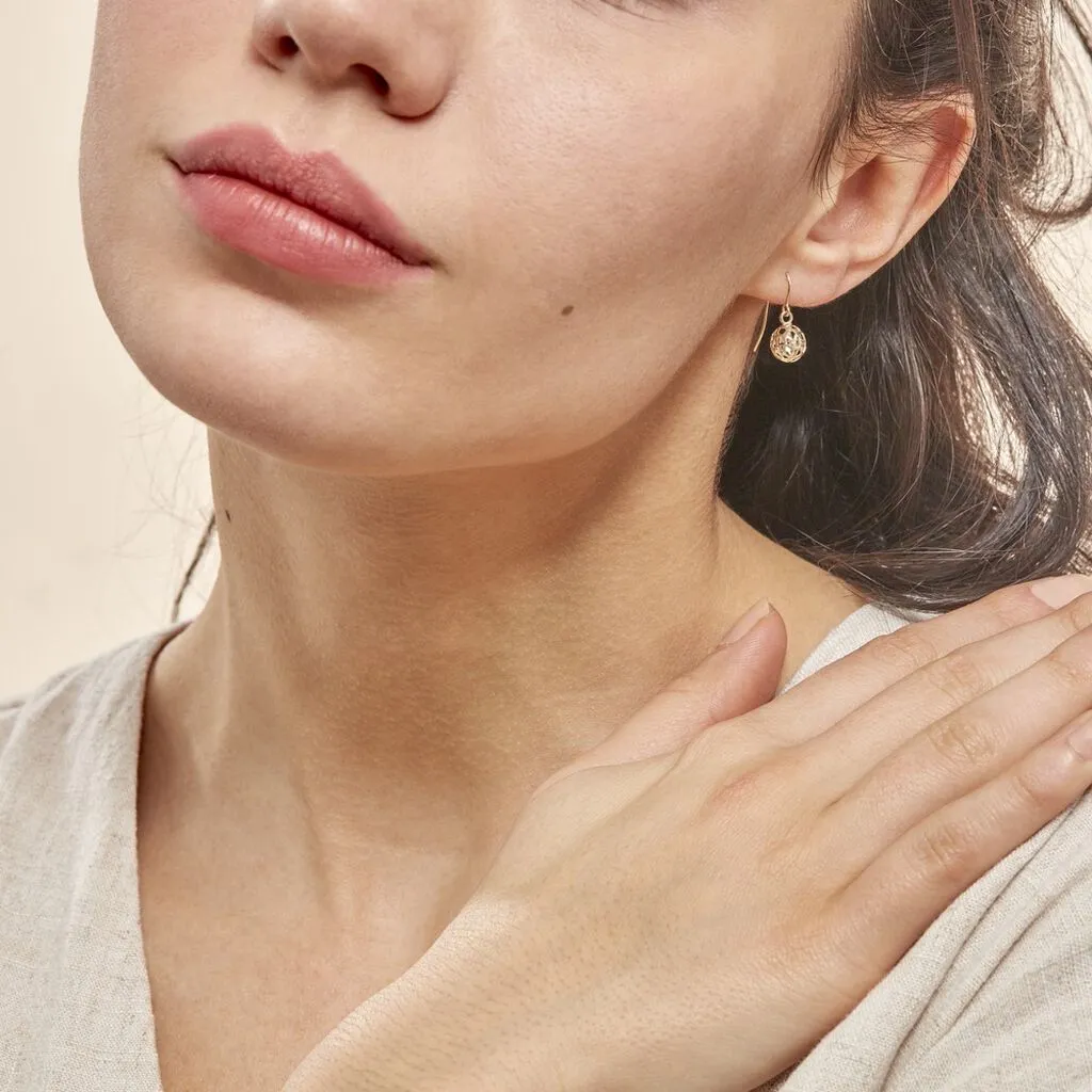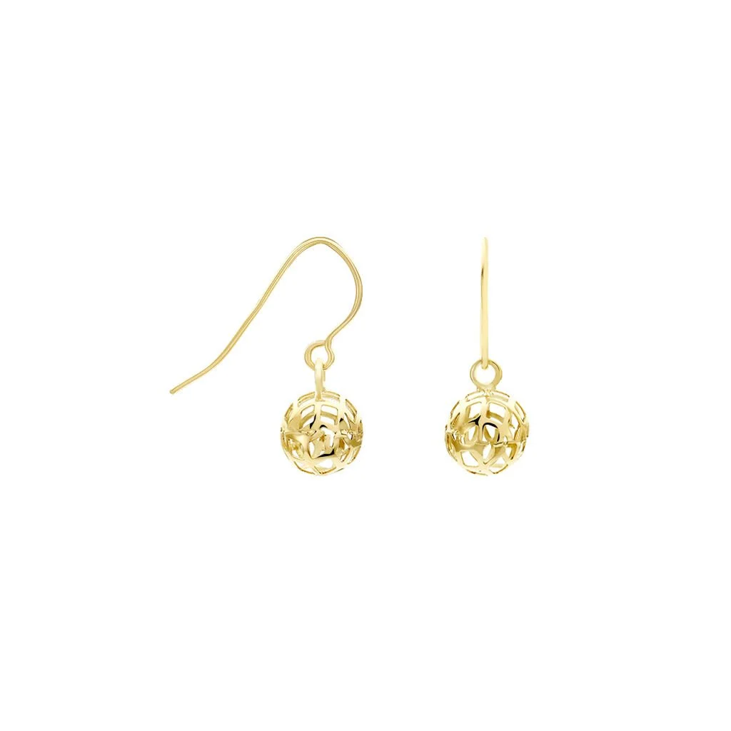 Boucles D’oreilles Pendantes Or Jaune 375/1000 Boule Ajourée 6.5mm