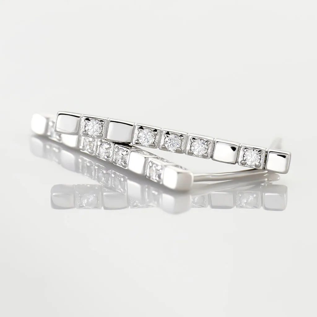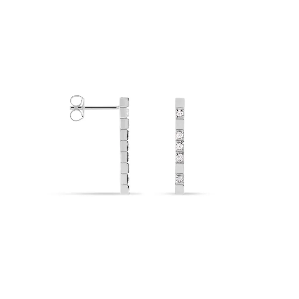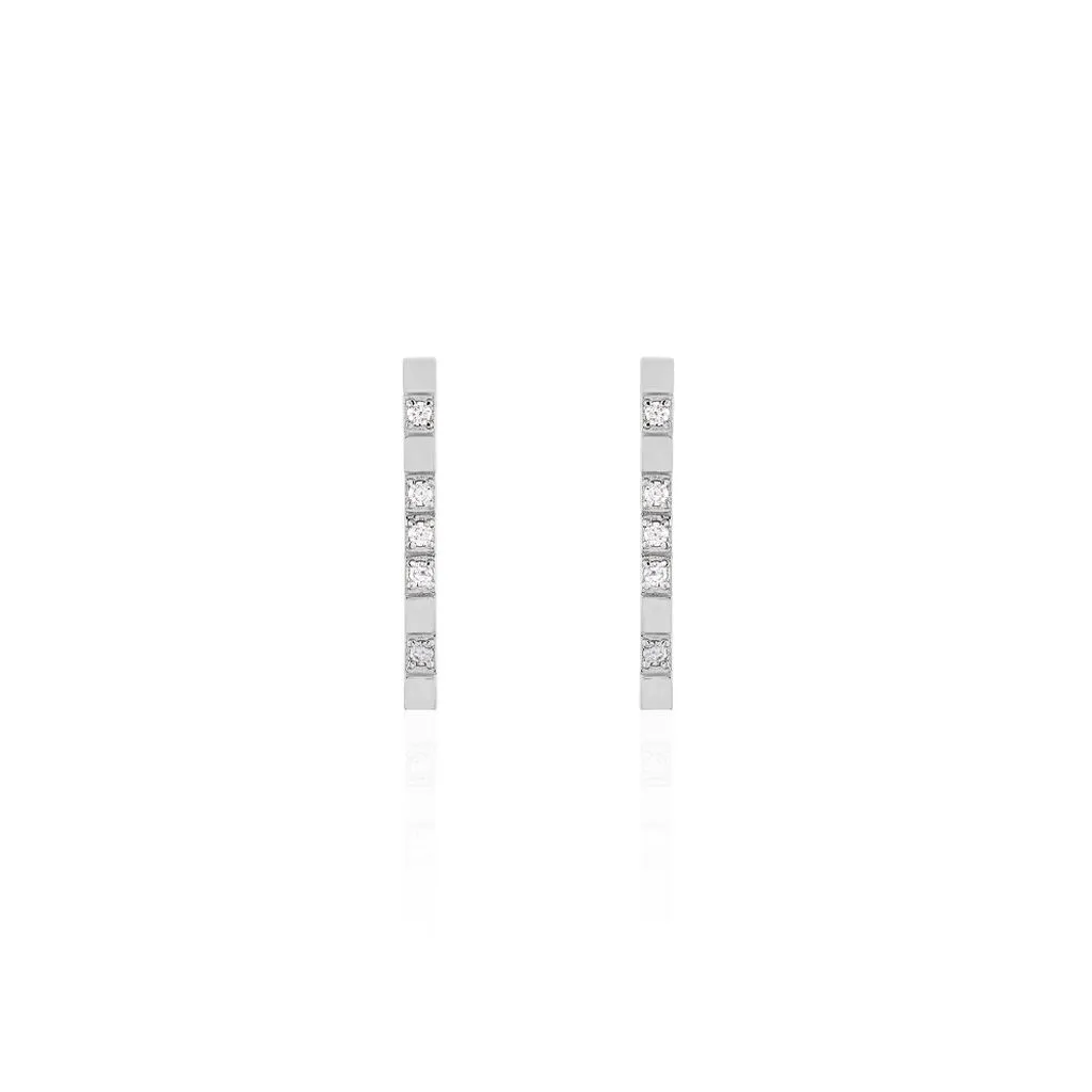 Boucles D’oreilles Argent 925/1000 Barrettes Quadrillees Oxyde