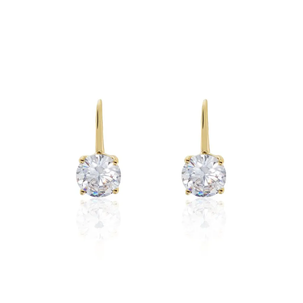 Boucles D’oreilles Pendantes Plaque Or Jaune Dormeuses Serti Griffes Oxydes De Zirconium