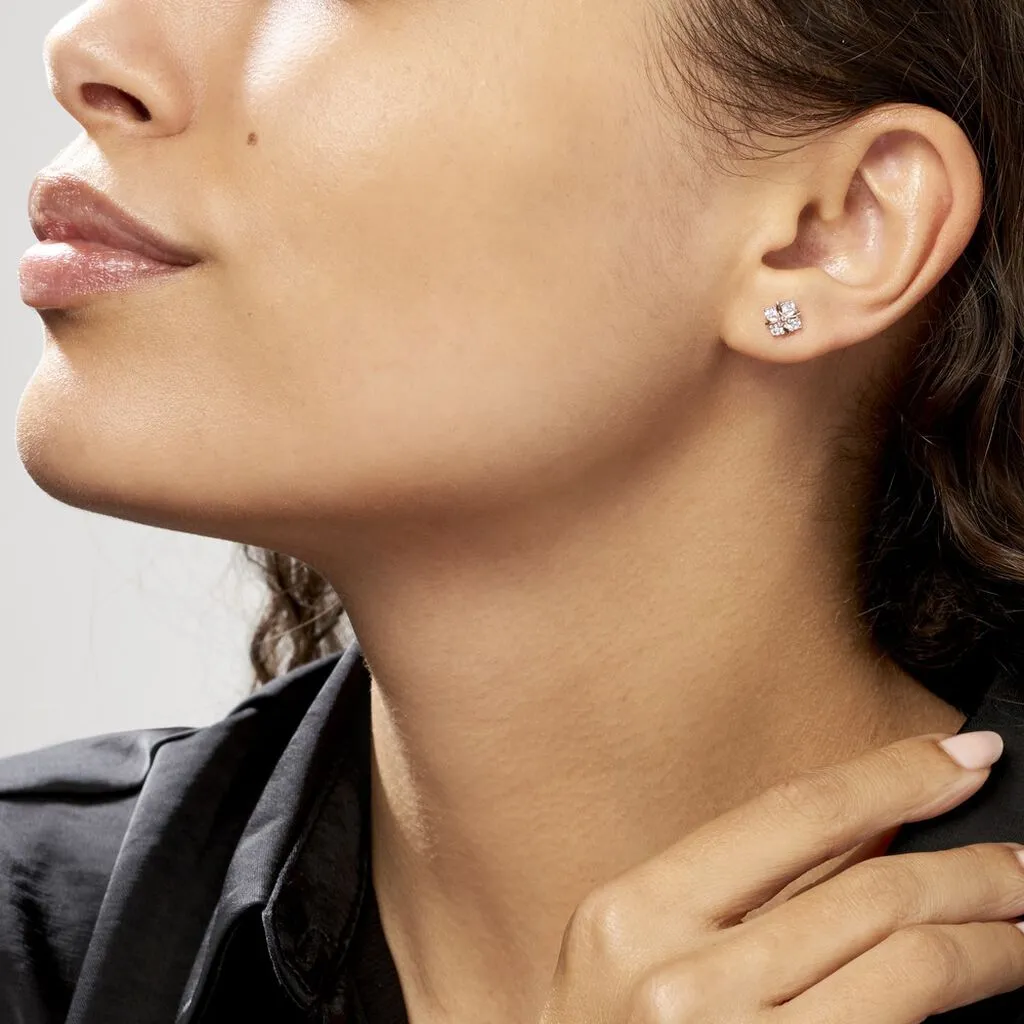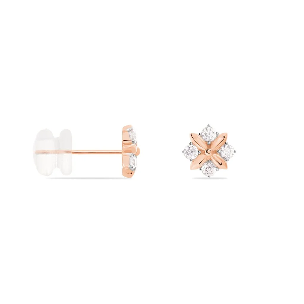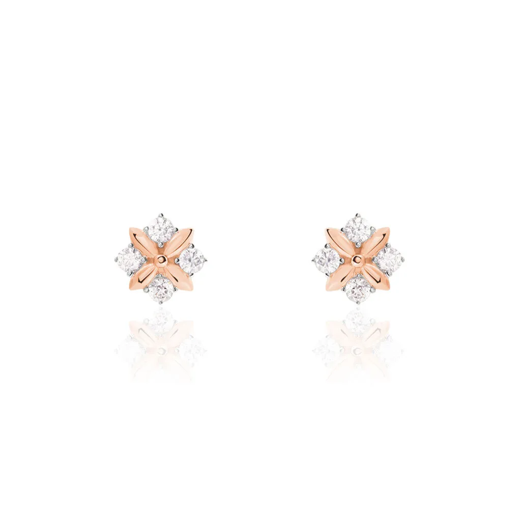 Boucles D’oreilles Or Rose 375/1000 Forme Losange Oxydes De Zirconium