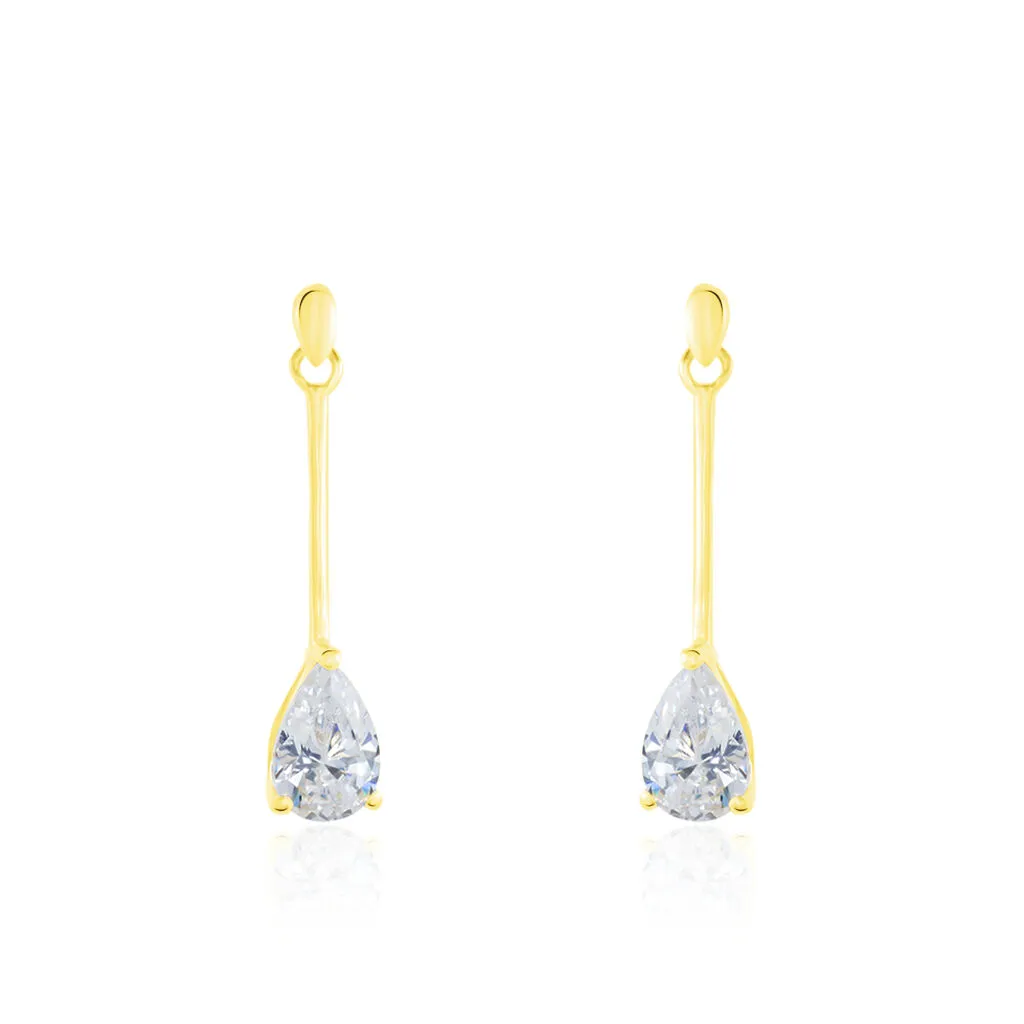 Boucles D’oreilles Pendantes Goutte Or Jaune Oxyde De Zirconium