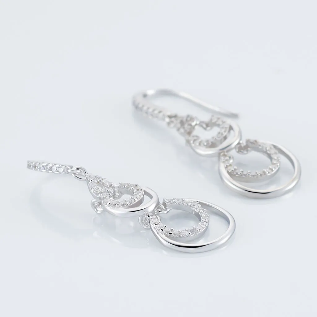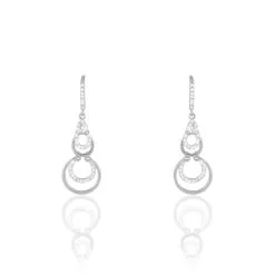 Boucles D’oreilles Pendantes Argent Blanc 925/1000 Cercles Ajoures Pavage Oxydes De Zirconium