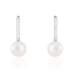 Boucles D’oreilles Pendantes Gwaldys Argent Perle De Culture Et Oxyde