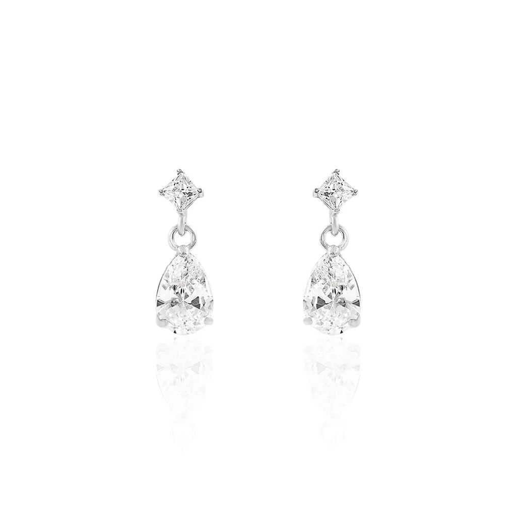 Boucles D’oreilles Or Blanc 375/1000 Gouttes Oxydes De Zirconium