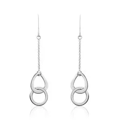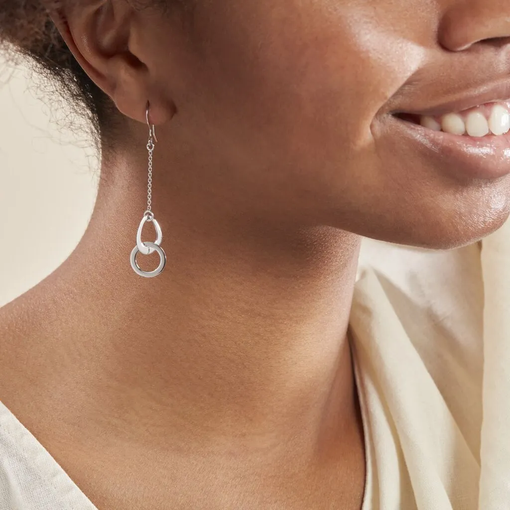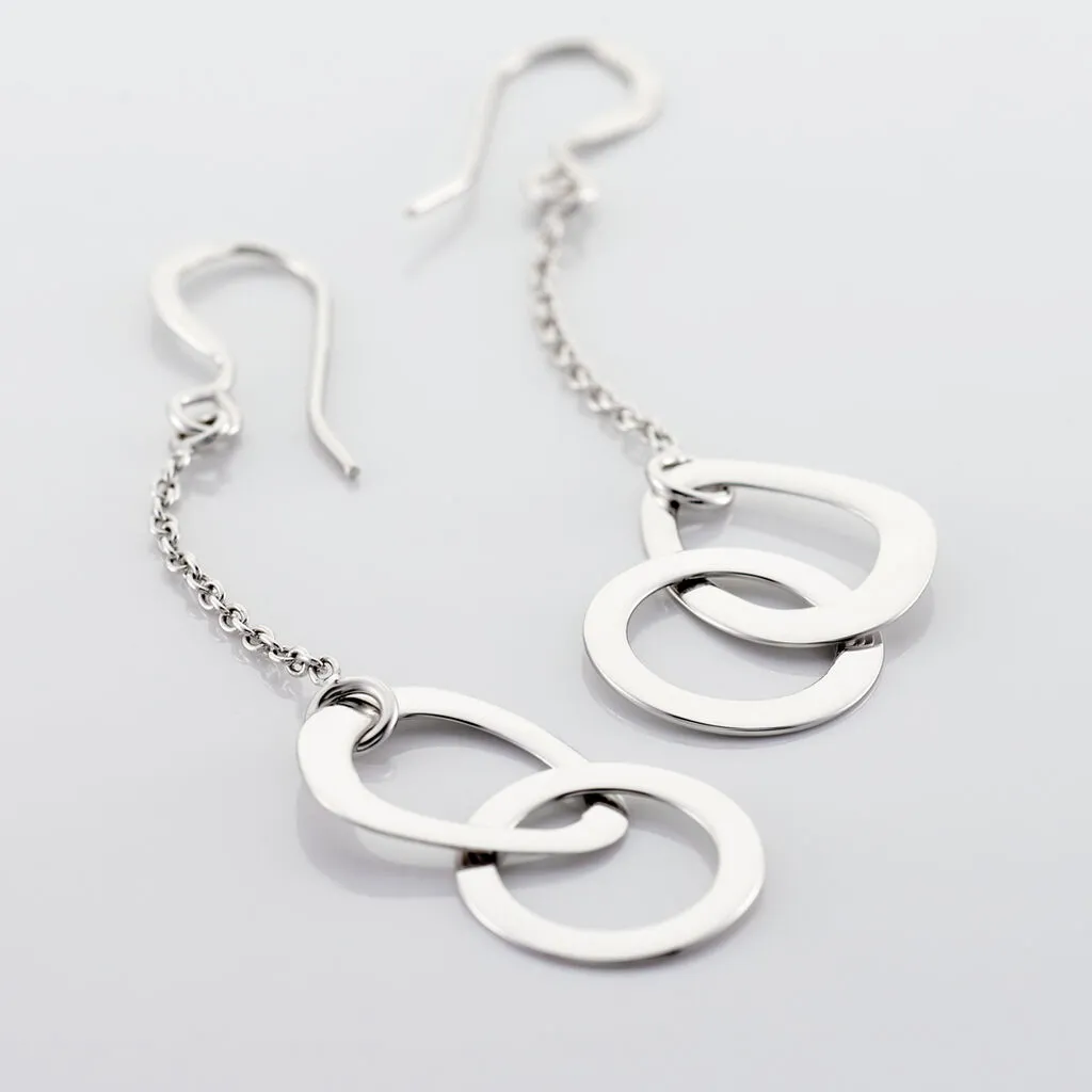 Boucles D’oreilles Pendantes Argent Blanc 925/1000 Anneaux Ovales Entrelaces