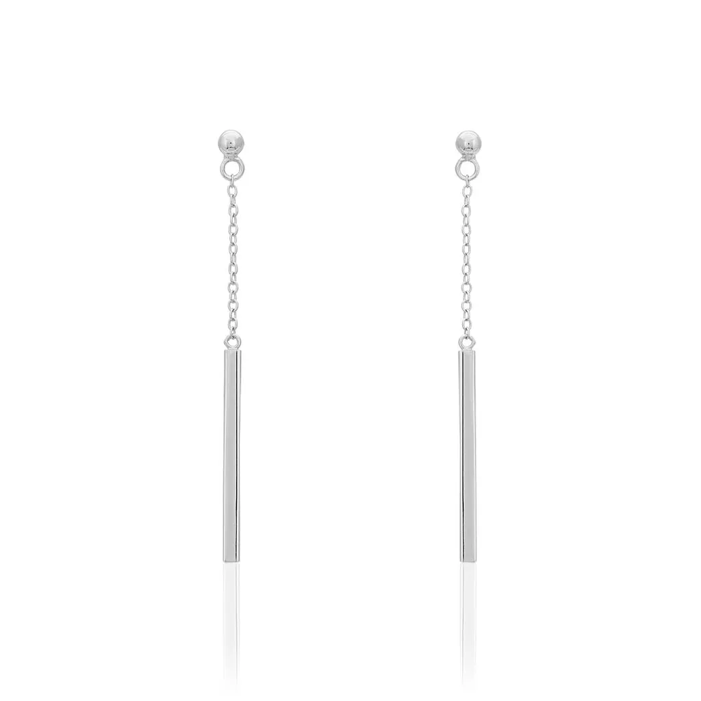 Boucles D’oreilles Pendantes Argent Blanc 925/1000 Barrettes Mailles Forcat