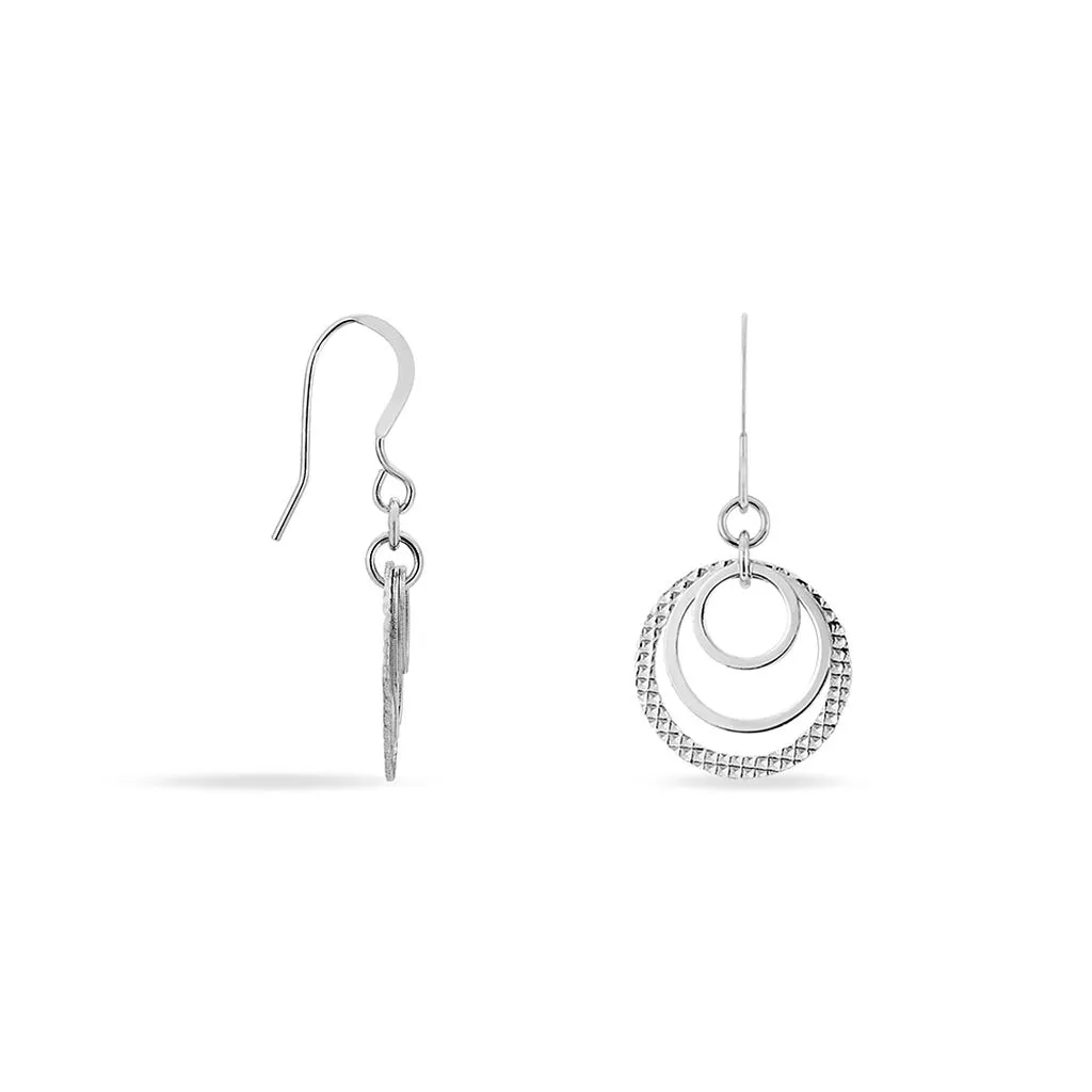 Boucles D’oreilles Pendantes Argent 925/1000 Cercles Multiples Ajoures Finition Lisse Et Diamantee