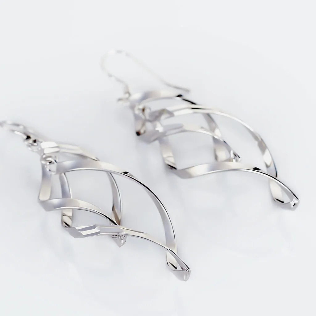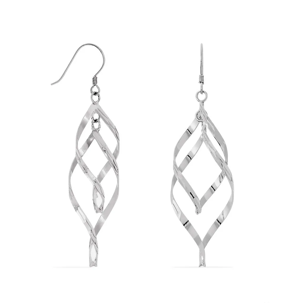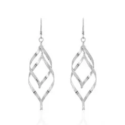 Boucles D’oreilles Pendantes Argent Blanc 925/1000 Double Losanges Ajoures Entrelaces
