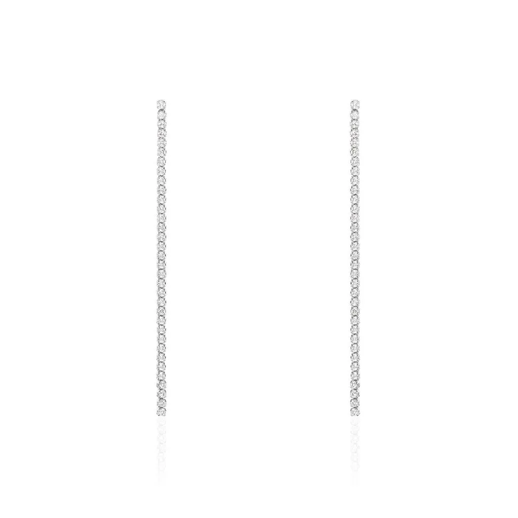 Boucles D’oreilles Pendantes Argent 925/1000 Rivière Oxydes De Zirconium Serti 4 Griffes Maille Tennis 6cm