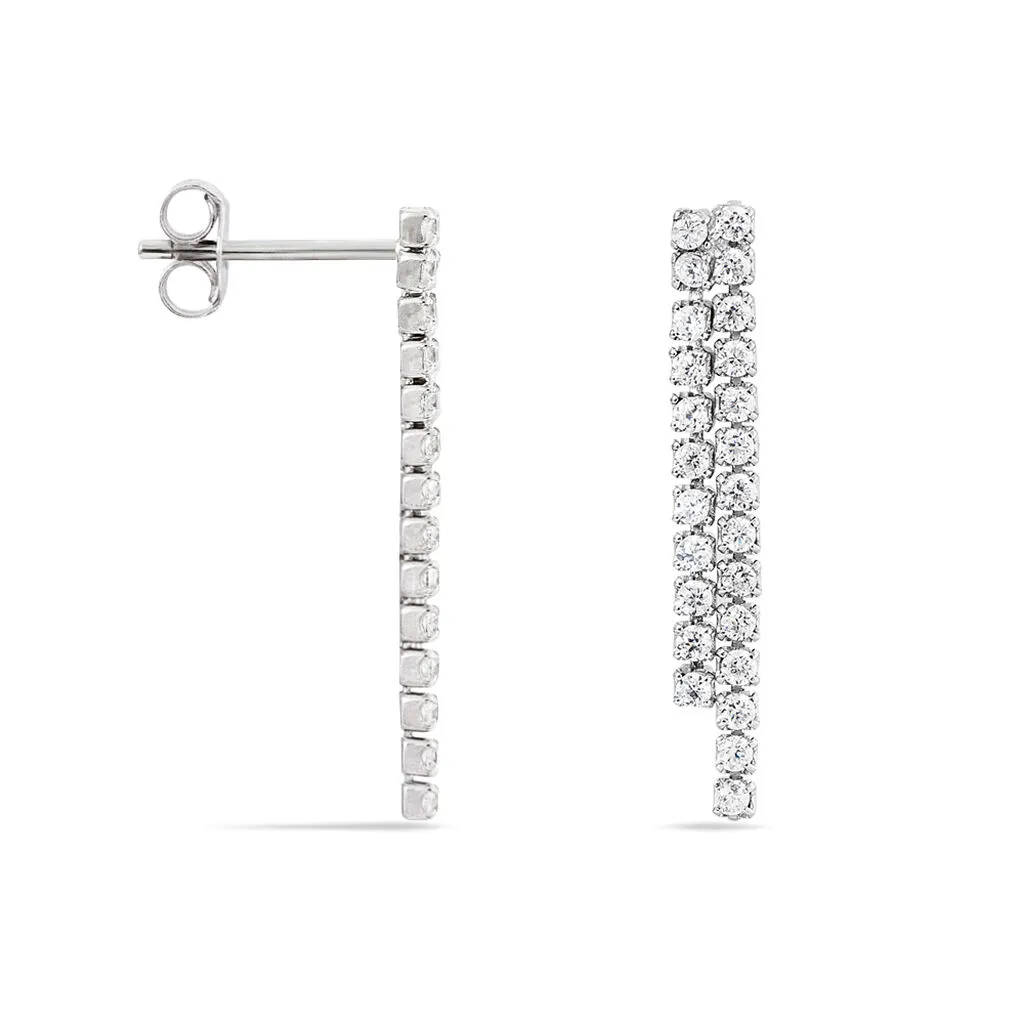Boucles D’oreilles Argent Blanc 925/1000 Double Rivieres Oxydes De Zirconium