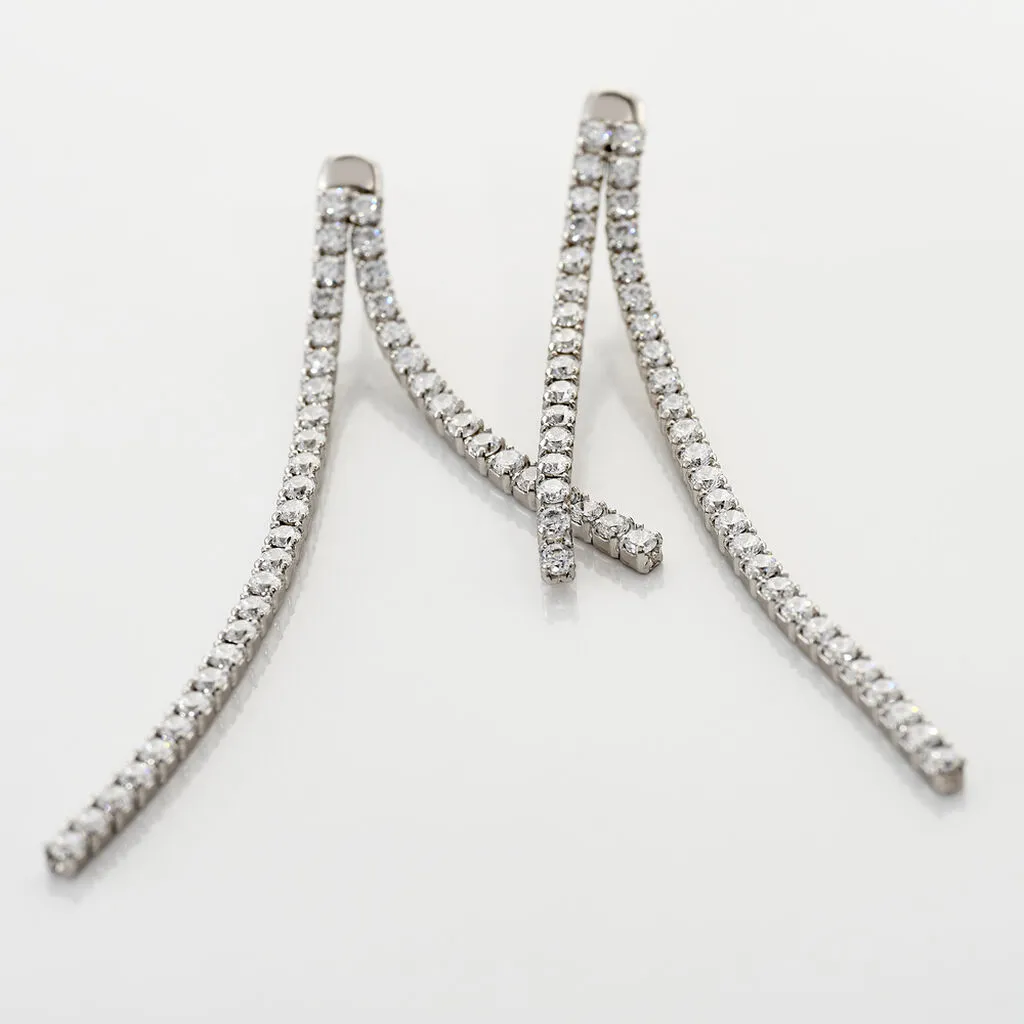 Boucles D’oreilles Pendante Argent Blanc 925/1000 Strass 2 Rangs Long/court