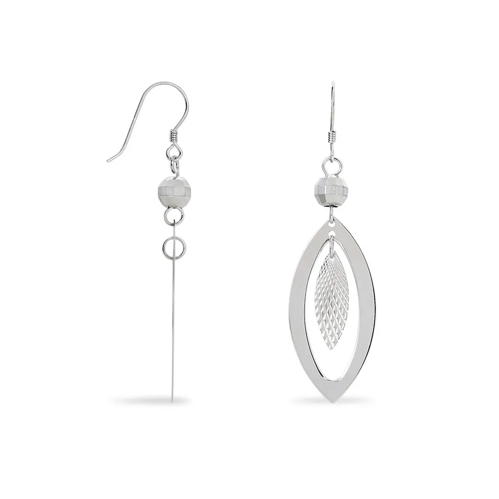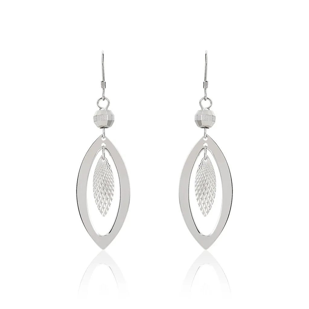 Boucles D’oreilles Pendantes Argent Blanc 925/1000 Gouttes Finitions Lisses Et Diamantees