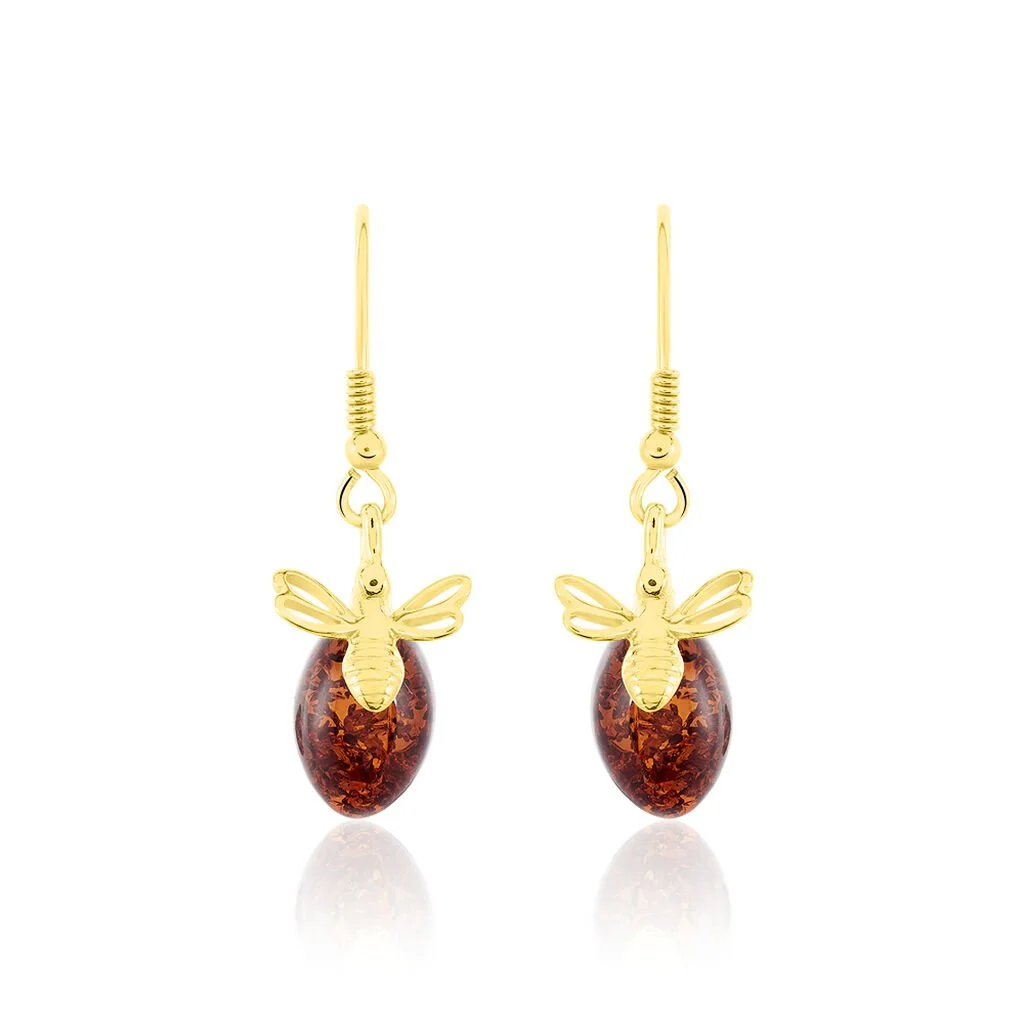 Histoire D’Or Boucles D’oreilles Pendantes Lyla Argent Jaune Ambre