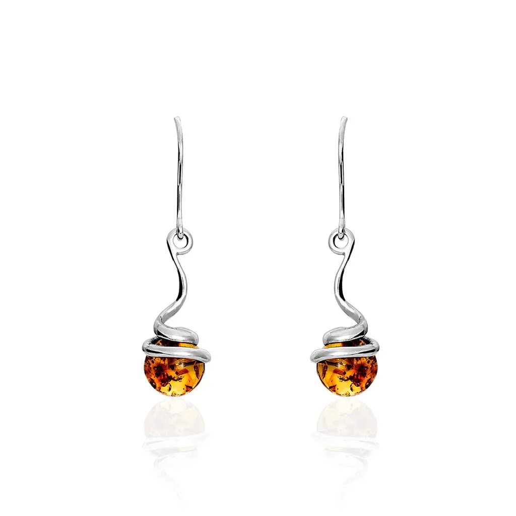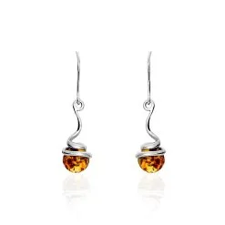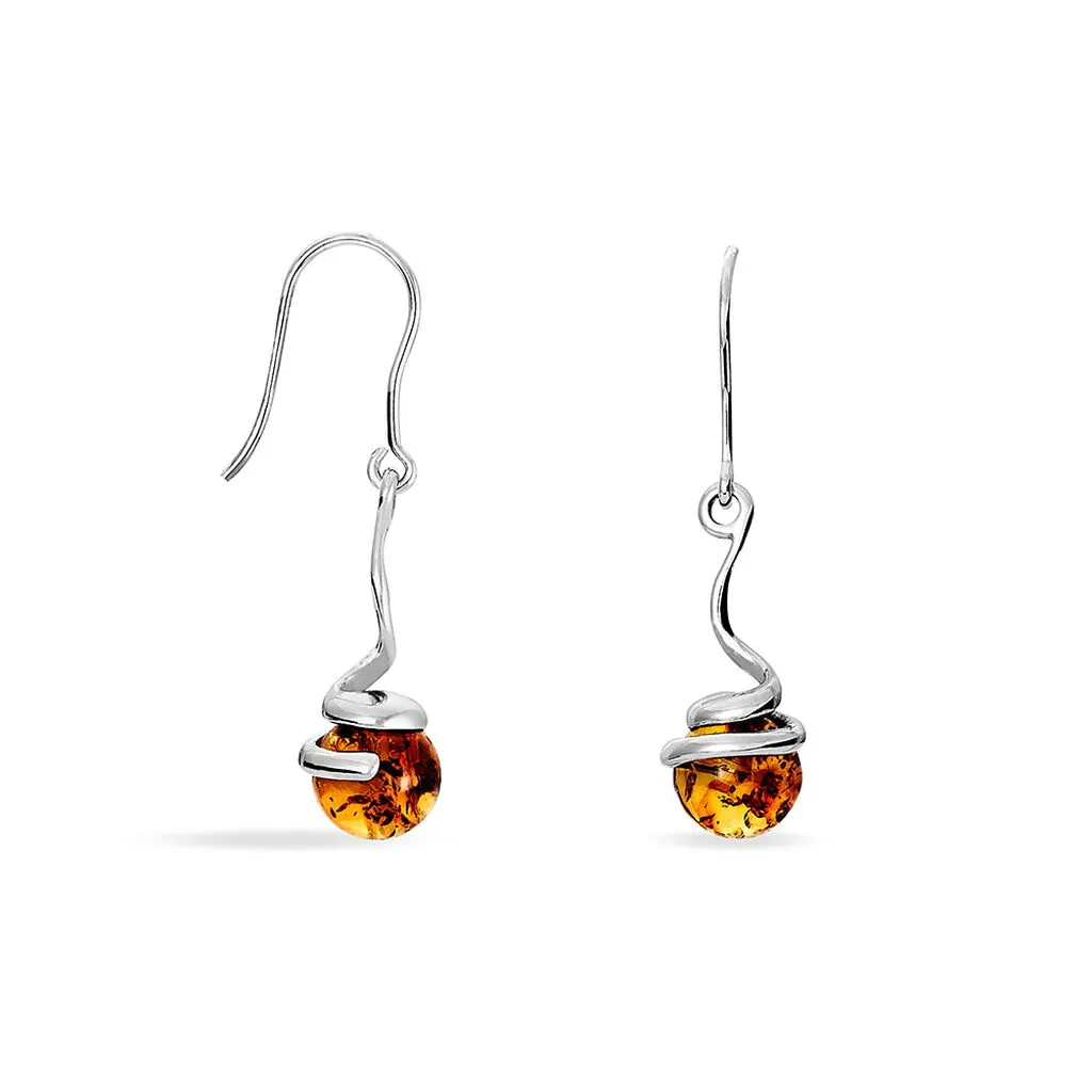 Boucles D’oreilles Pendantes Argent Blanc 925/1000 Ambre Ronde Pendule