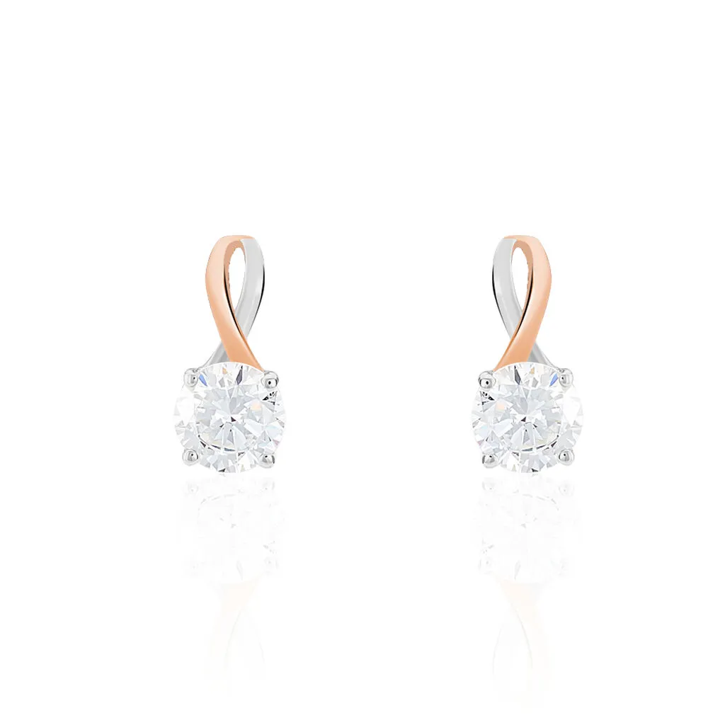 Boucles D’oreilles Or Bicolore Blanc Et Rose 375/1000 Oxydes De Zirconium Centraux 5.2mm